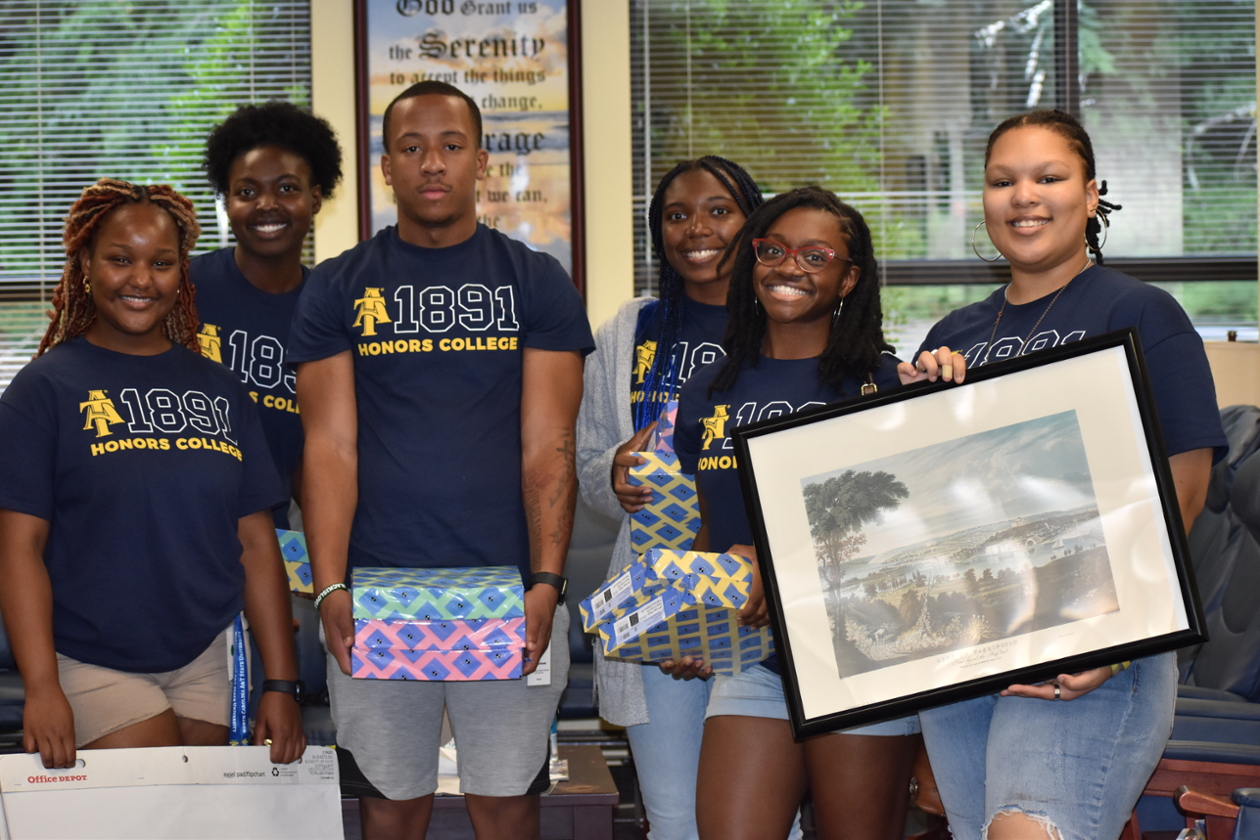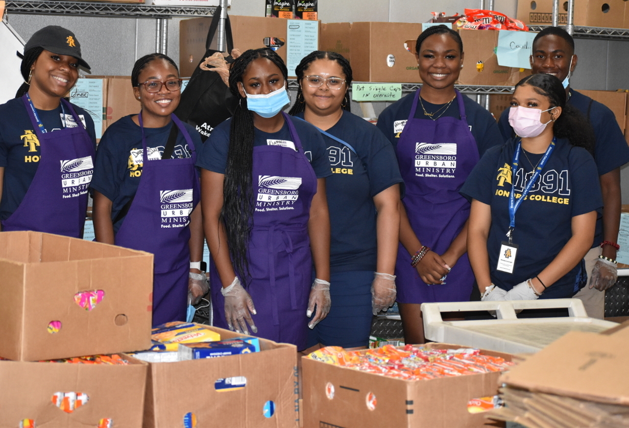 During Honors Day of Service, N.C. A&T Honors College students are transported to civic organizations and nonprofits in and around Greensboro, North Carolina, to volunteer their time and talents. The annual event allows students to get acclimated to campus and the community while serving with fellow Aggies.